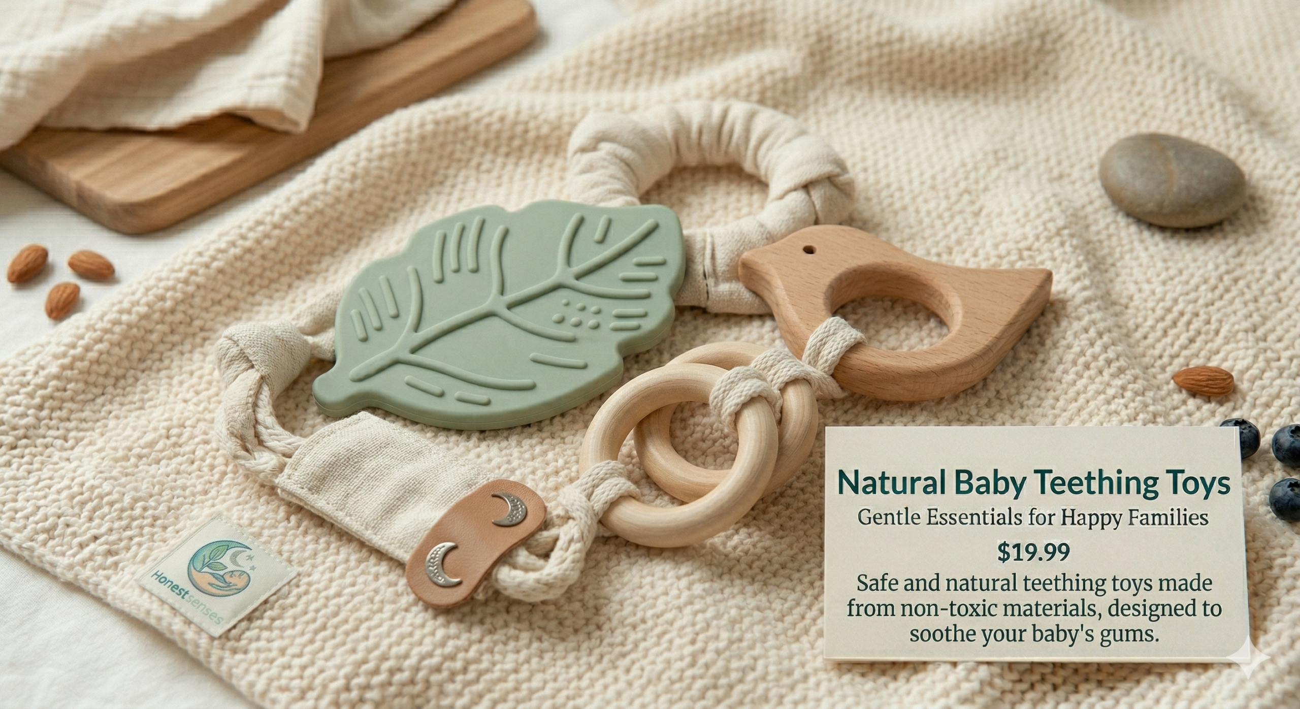 Safe and natural teething toys made from non-toxic materials, designed to soothe your baby’s gums.